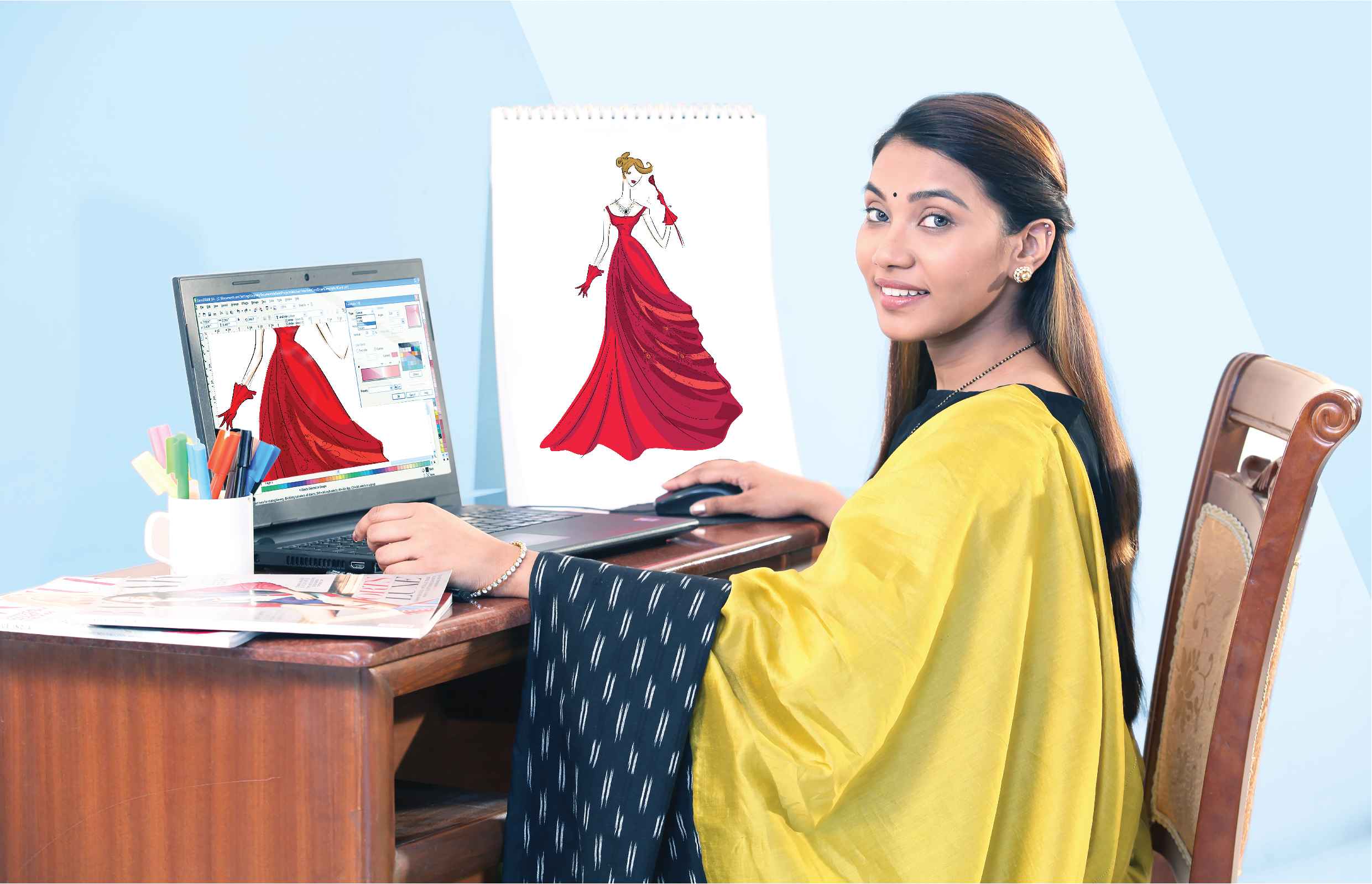 In this course they also can know about illustration, Draping, Embroidery, fabric painting by party. After completion of the fashion designing course if they participate in fashion shows they can show their talents and ability by making different types of garments.